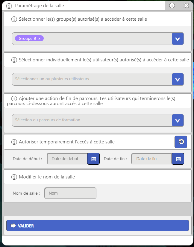 A noter qu'il est possible d'autoriser plusieurs groupes à accéder à une salle.